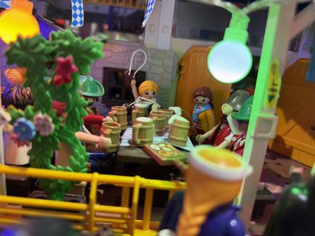 Ein Bierzelt mit feiernden Menschen, großen Fässern und natürlich einer Küche ist das Highlight. Aber auch Fahrgeschäfte wie der Break Dance, ein Kettenkarussell, Autoscooter und die Achterbahn „Bergblitz“ sind dabei. Auch Buden und kleine Verkaufsstände im Miniaturformat sind zu sehen. Dort stehen die kleinen Figuren aus dem Hause Playmobil spätestens ab dem Wochenende Schlange. Die Dauerausstellung im emsländischen Niederlangen gibt es inzwischen seit zehn Jahren und wird ehrenamtlich geführt. Nicht nur Menschen aus der Region, sondern in den Ferien auch zahlreiche Urlauber aus weiten Teilen Deutschlands und dem benachbarten Ausland gehören zu den Gästen. Auf fast 300 Quadratmeter werden in über 20 Themenwelten mit rund 4.000 Figuren ganz unterschiedliche Szenarien dargestellt. Oft handelt es sich um lebensnahe Situationen, die manchmal auch mit einem Augenzwinkern verbunden sind. Zu den Highlights zählen eine Fußballarena mit über 1000 Figuren, das Schloss Johnannisburg aus Aschaffenburg mit über 100 Fenstern, ein riesiger Flughafen und die amerikanische Stadt Chicago. „Fertig werden wir hier nie, denn wir greifen jedes Jahr drei bis vier Themen auf, die dann umgesetzt werden“, berichtet der Leihgeber der Ausstellung Jürgen Eden. Manchmal handele es sich um aktuelle Themen, wie beispielsweise die seinerzeit das Lutherjahr oder sportliche Ereignisse wie die Fußball EM oder WM. Die Vorbereitungen für ein neues Thema von der Materialbeschaffung bis zum finalen Aufstellen dauern häufig ein Jahr. Träger der Miniwelten Lathen ist die Samtgemeinde Lathen. Die Dauerausstellung hat immer sonntags von 14.30 bis 17.30 Uhr geöffnet und befinden sich im interkommunalen Gewerbegebiet an der A31 (Abfahrt Lathen) in Niederlangen, Feldkoppel 7. Die Eintrittspreise wurden sozial gestaltet. Eine Familienkarte kostet 8 Euro.